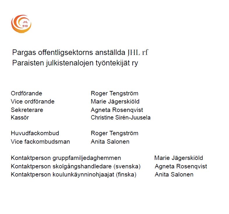 Pargas offentligsektorns anställda 510 / Paraisten julkistenalojen työntekijät JHL 510 rf